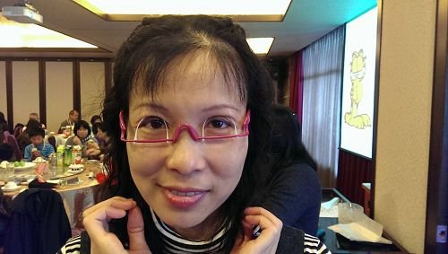 吳襄彤示範撐眼皮眼鏡